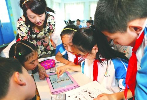 yesterday, Qingyang District (microblogging) held the first “wisdom Classroom Teaching Zhanping, the Chengdu Garden (International) Primary teacher the iPad into the classroom, instead of a paper exercise books.