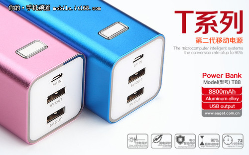 IT168 market mobile power, in addition to taking into account the products we supply capability, its shape is adequate signs, grip feel is good enough, is also very important considerations. The recent yijie unveiled a metal shell, charging excellent compatibility as a selling point T88 mobile power products current promotional price of only 169 yuan, interested buyers do not miss it.